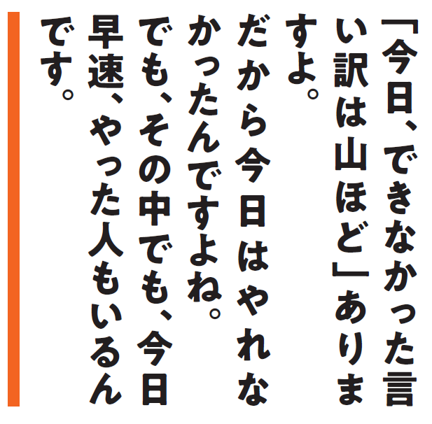 中川社長語録「今日、できなかった言い訳は山ほどありますよ(No.1628)」