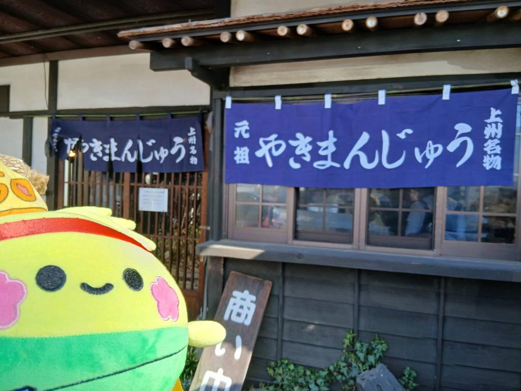 赤色チームのそよよは、やきまんじゅう屋さんの前でパチリ。