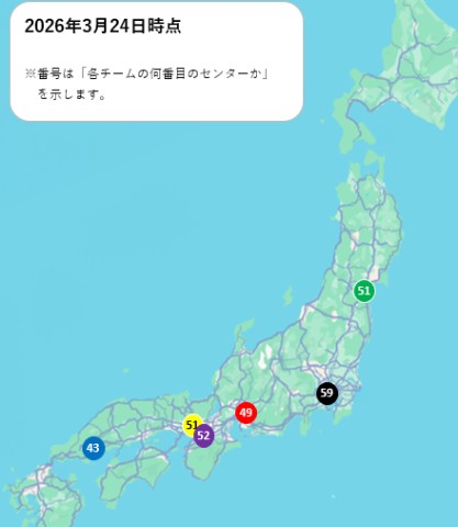 そよよはチームのハチマキをつけて、6チームに分かれて全国を移動中!